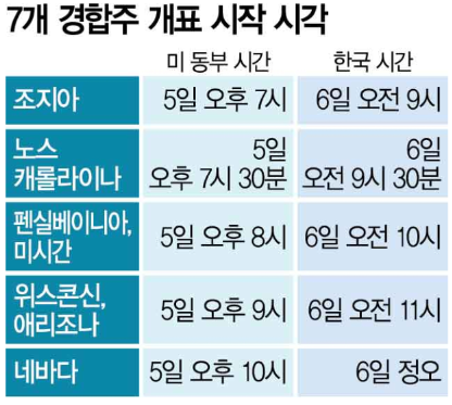 현지 시간 네바다주와 같은 서부 주에서는 투표소를 오후 10시까지 열어둡니다. 또한 투표 방식 중 우편 투표가 많아지면서 투표 집계에 며칠이 걸릴 수도 있습니다.