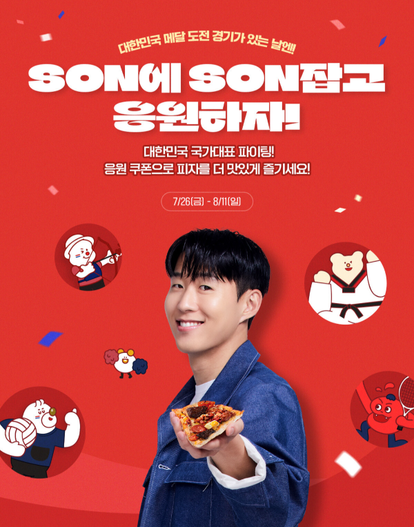 도미노피자 모델은 손흥민 씨의 이름을 따서 'son에 son 잡고 응원하자' 이벤트로 준비된 이벤트로 파리올림픽 기간이 종료되면 이벤트도 종료됩니다.